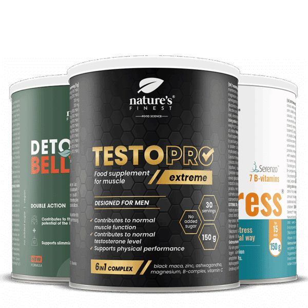 Eno merico (5 g) OK!Stress in (5 g) TestoPRO Extreme zmešajte v kozarcu vode (400 ml), premešajte in popijte.