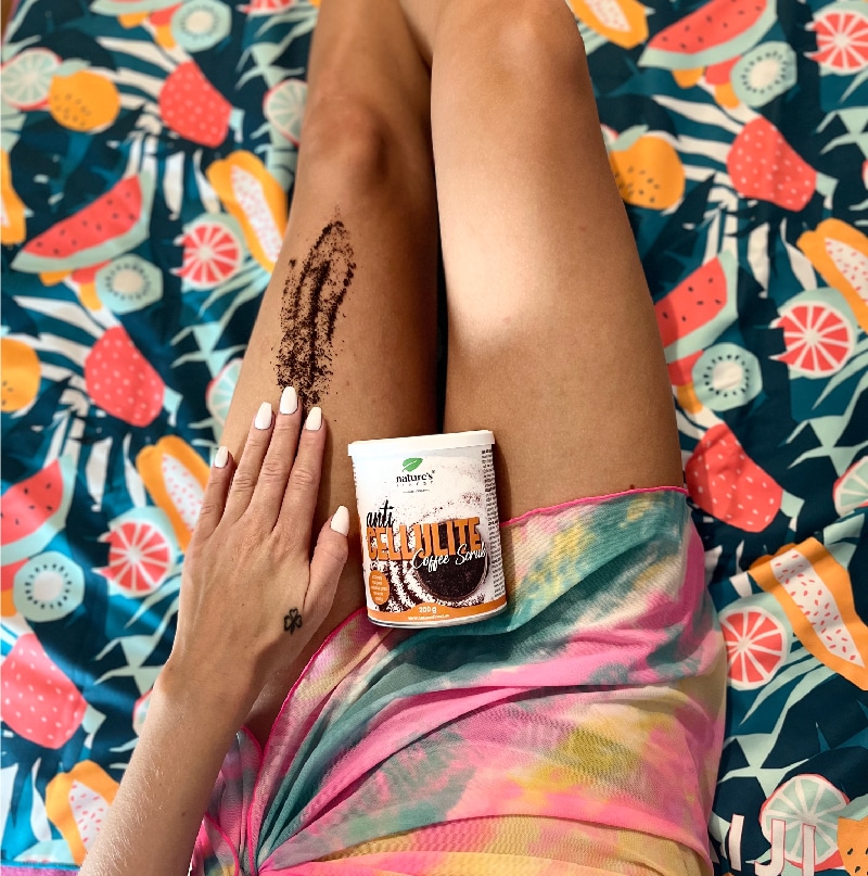 Naš anticelulitni kavni piling spodbuja mehansko obnovo kože in izboljšuje prekrvavitev.
