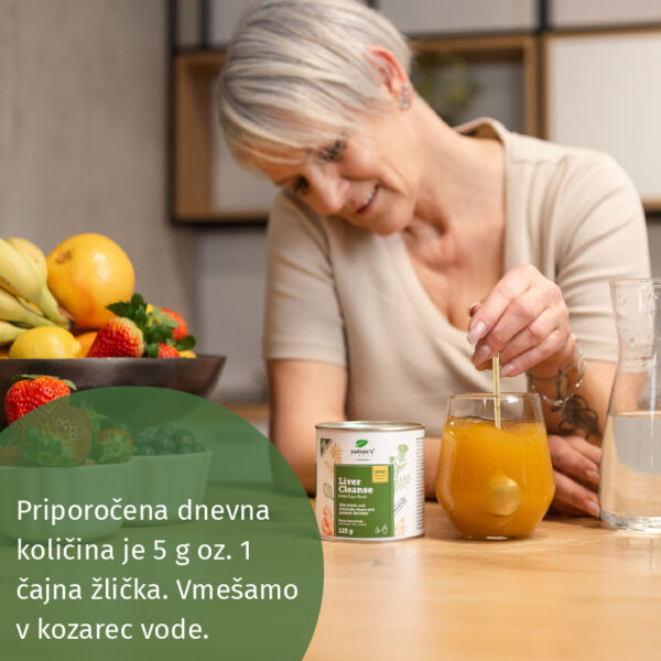 Priporočena dnevna količina je 5 g oz. 1 čajna žlička. Vmešamo v kozarec vode.