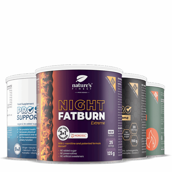 • Night FatBurn Extreme: vrhunska formula, ki podpira hujšanje in pomaga nadzorovati telesno težo⁴– s patentirano formulo Morosil®. Izvleček baldrijana prispeva k optimalni sprostitvi in pomaga ohranjati naraven spanec.