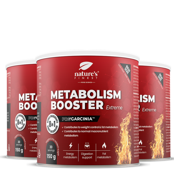 Metabolism Booster Extreme prispeva k sproščanju energije pri presnovi¹ in normalni presnovi  makrohranil⁶ s svojimi skrbno izbranimi sestavinami. Cink prispeva k normalni presnovi ogljikovih hidratov in makrohranil⁶, medtem ko borovnice prispevajo k normalni presnovi glucidov, lipidov in beljakovin⁷. Guarana se tradicionalno uporablja za pomoč pri presnovi maščob, kar pripomore k uravnavanju telesne teže.