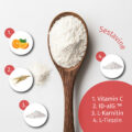 Dvakrat dnevno vmešajte 5 g (1 merico) v kozarec vode in popijte. Priporočamo, da napitek zaužijete pred glavnimi obroki. Za natančno odmerjanje priporočamo tehtanje.