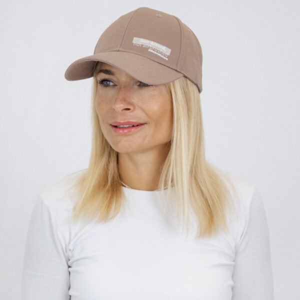 Minimalistična rjava kapa, zasnovana za sproščen vsakodnevni slog. Z napisom “Sun-kissed, not airbrushed” v čistem belem potisku slavi naravno lepoto in pristnost.