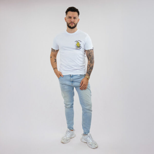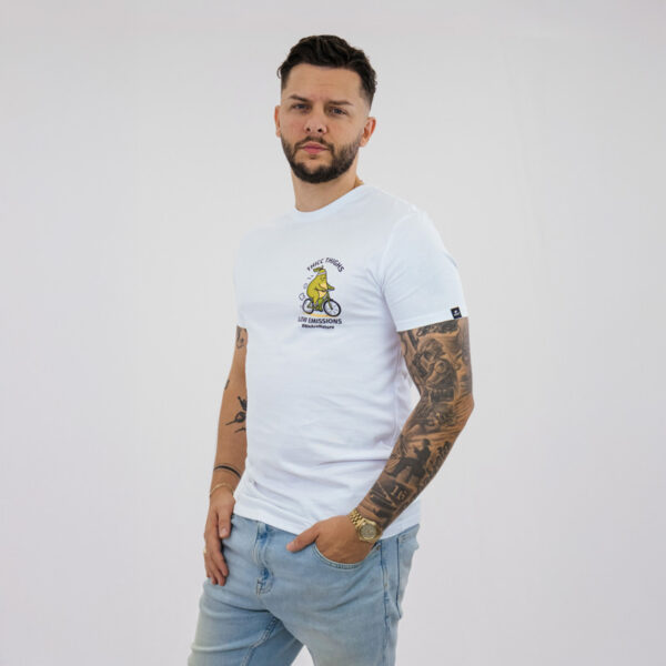 Bela majica, zasnovana za sproščen vsakodnevni slog. Z napisom “Thicc thighs, low emissions” in igrivo grafiko avokada na kolesu slavi samozavest, ljubezen do sebe in zavestno življenje.